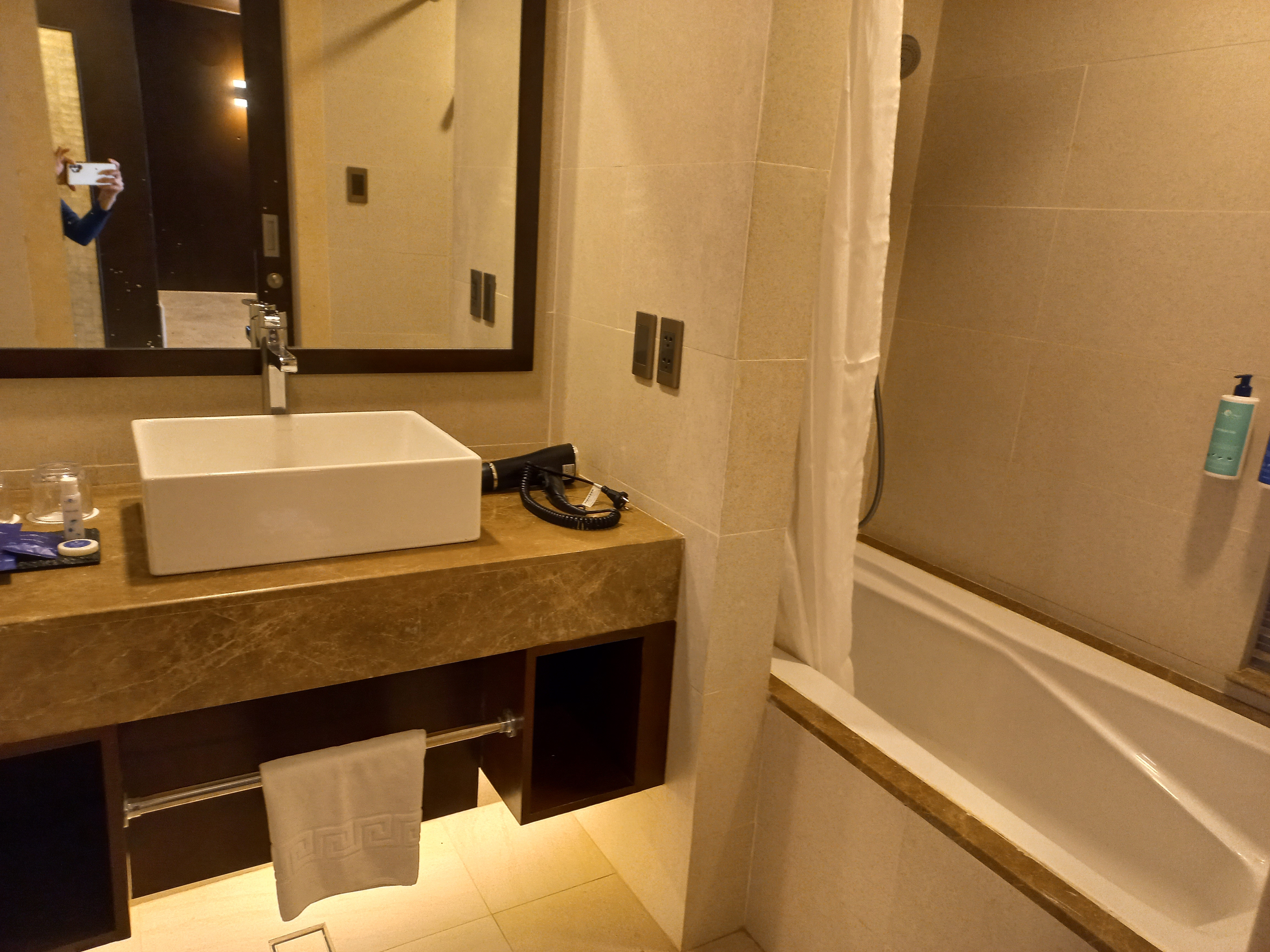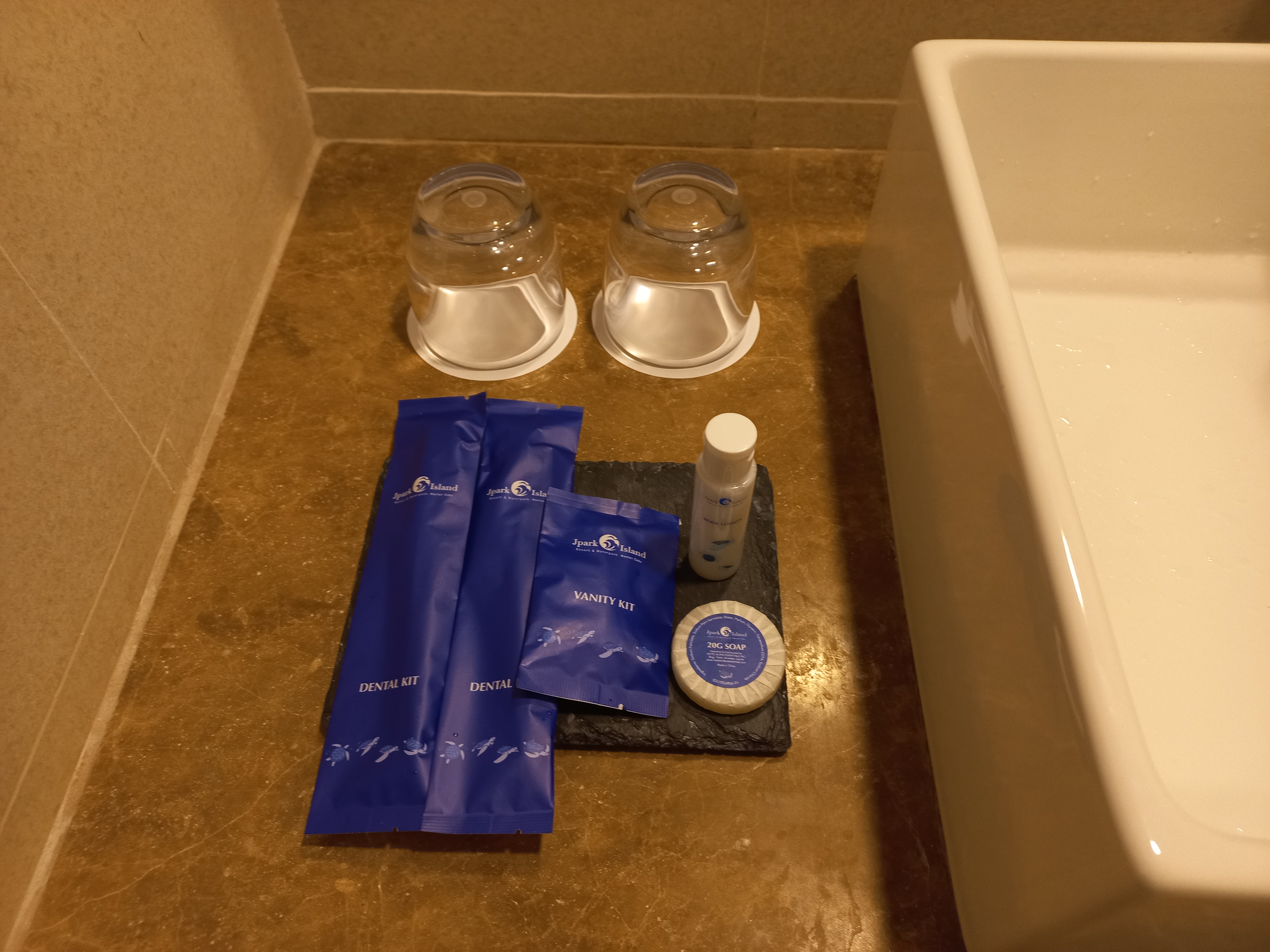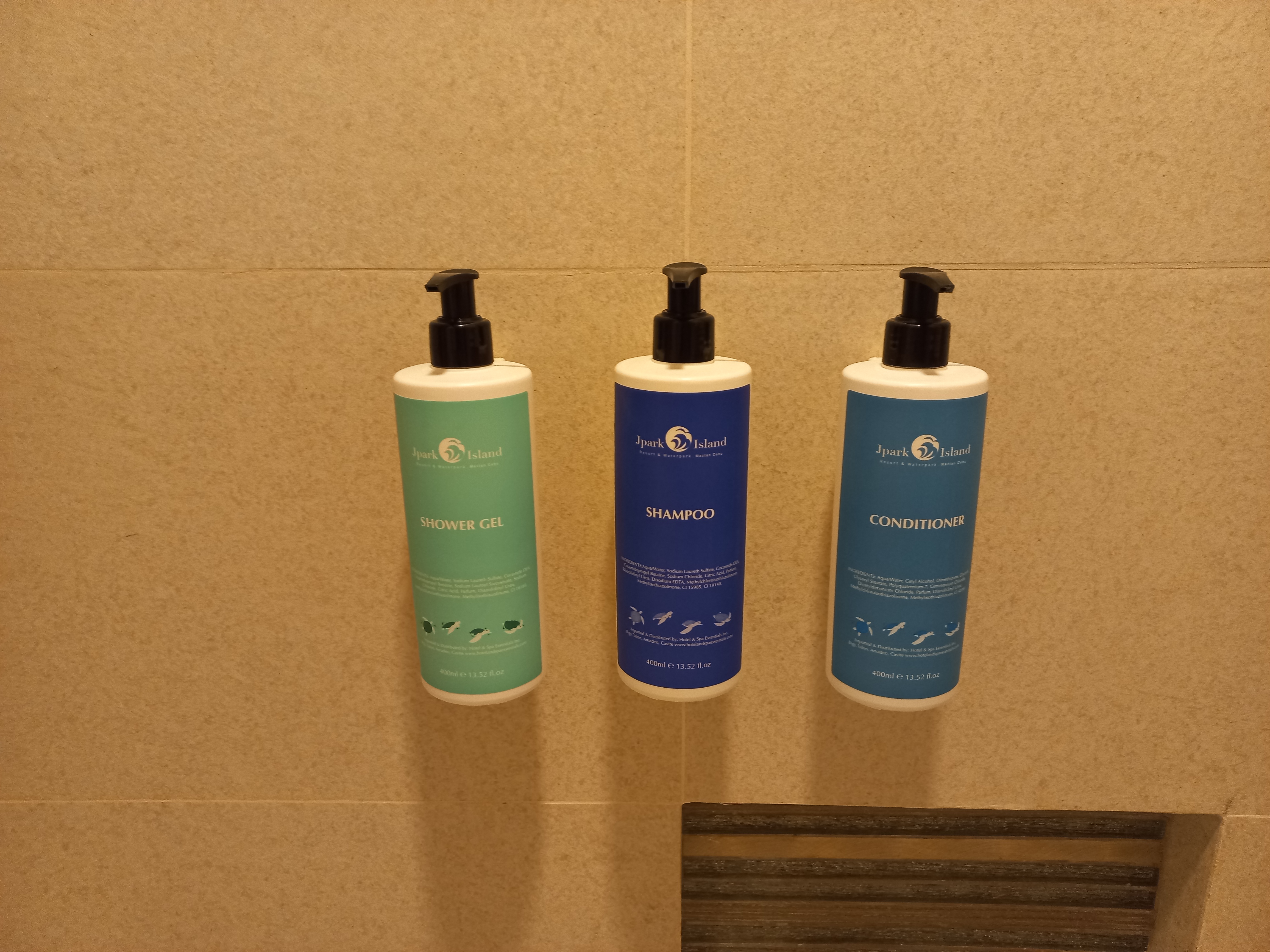욕실도 뽀송하고 깨끗했고 기본 어매니티로 칫솔, 치약, 비누, 샤워캡, 면봉, 고무줄, 바디로션, 샴푸, 컨디셔너, 바디워시 구비되어있습니다. 드라이어도 작동 잘되고 바람 세고 괜찮았습니다.