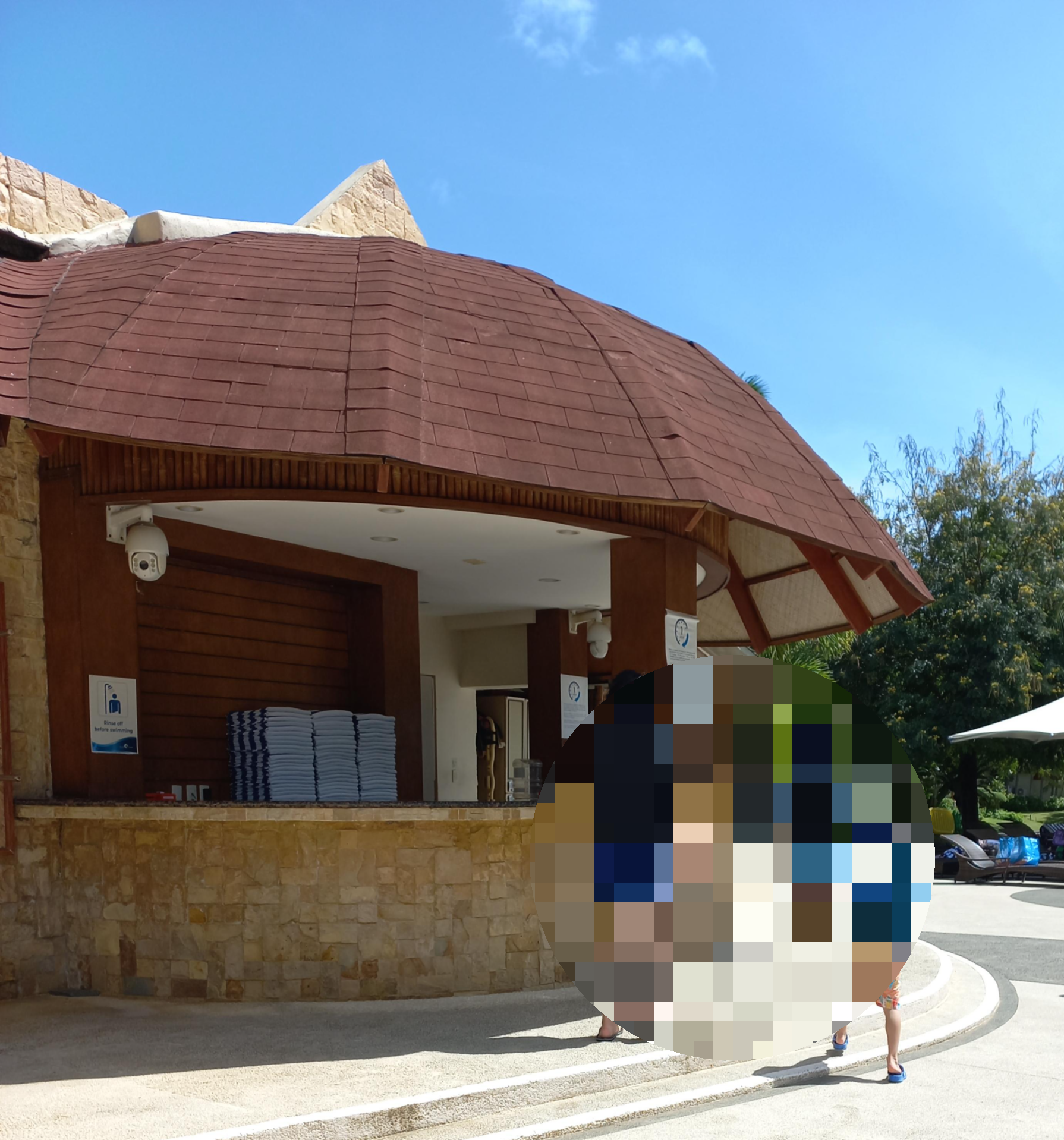 메인풀과 다른 슬라이드 사용하려면 팔찌를 착용해야 됩니다. 방번호와 인원수를 말하면 팔찌, 타올을 빌려줍니다.