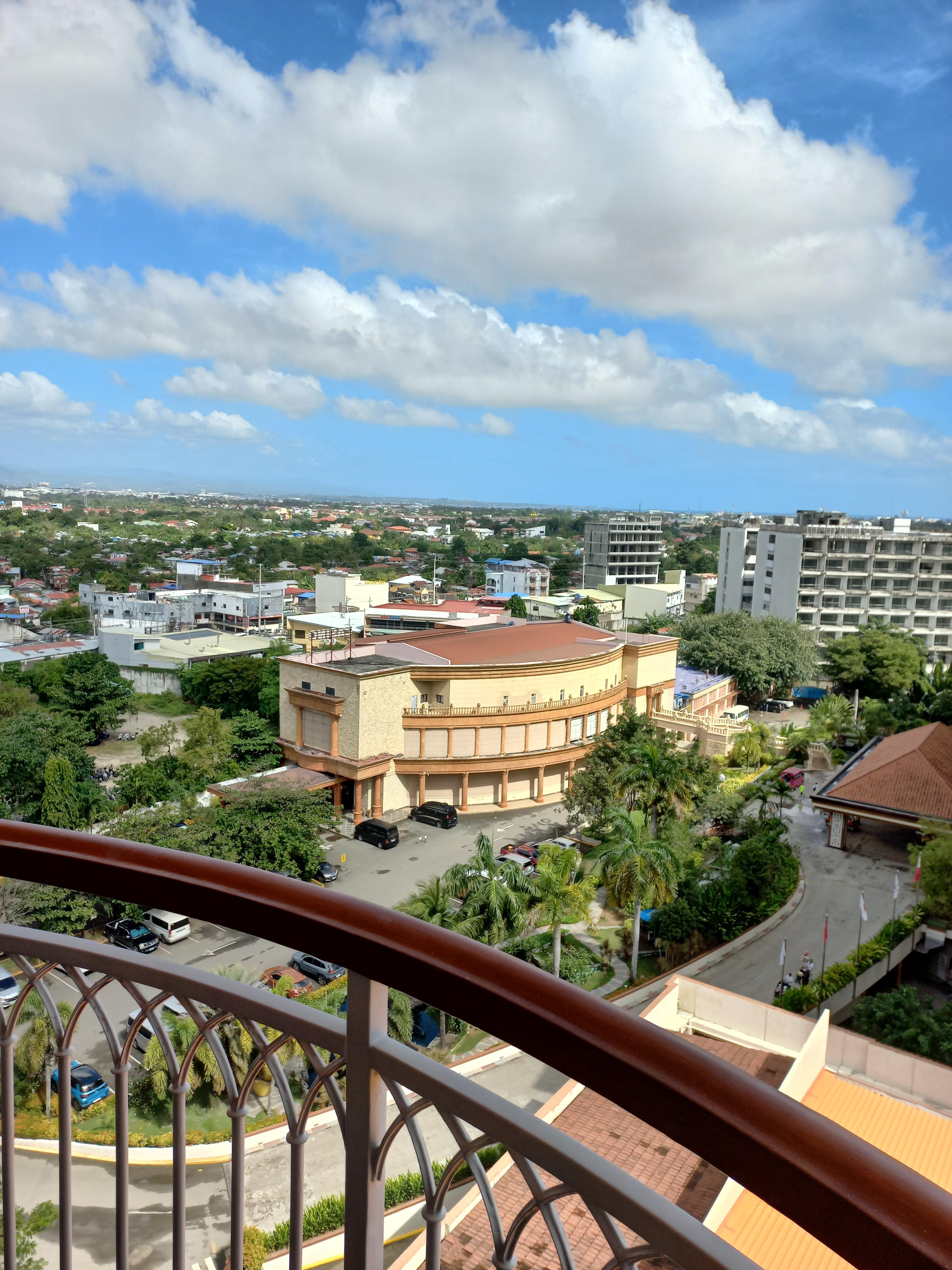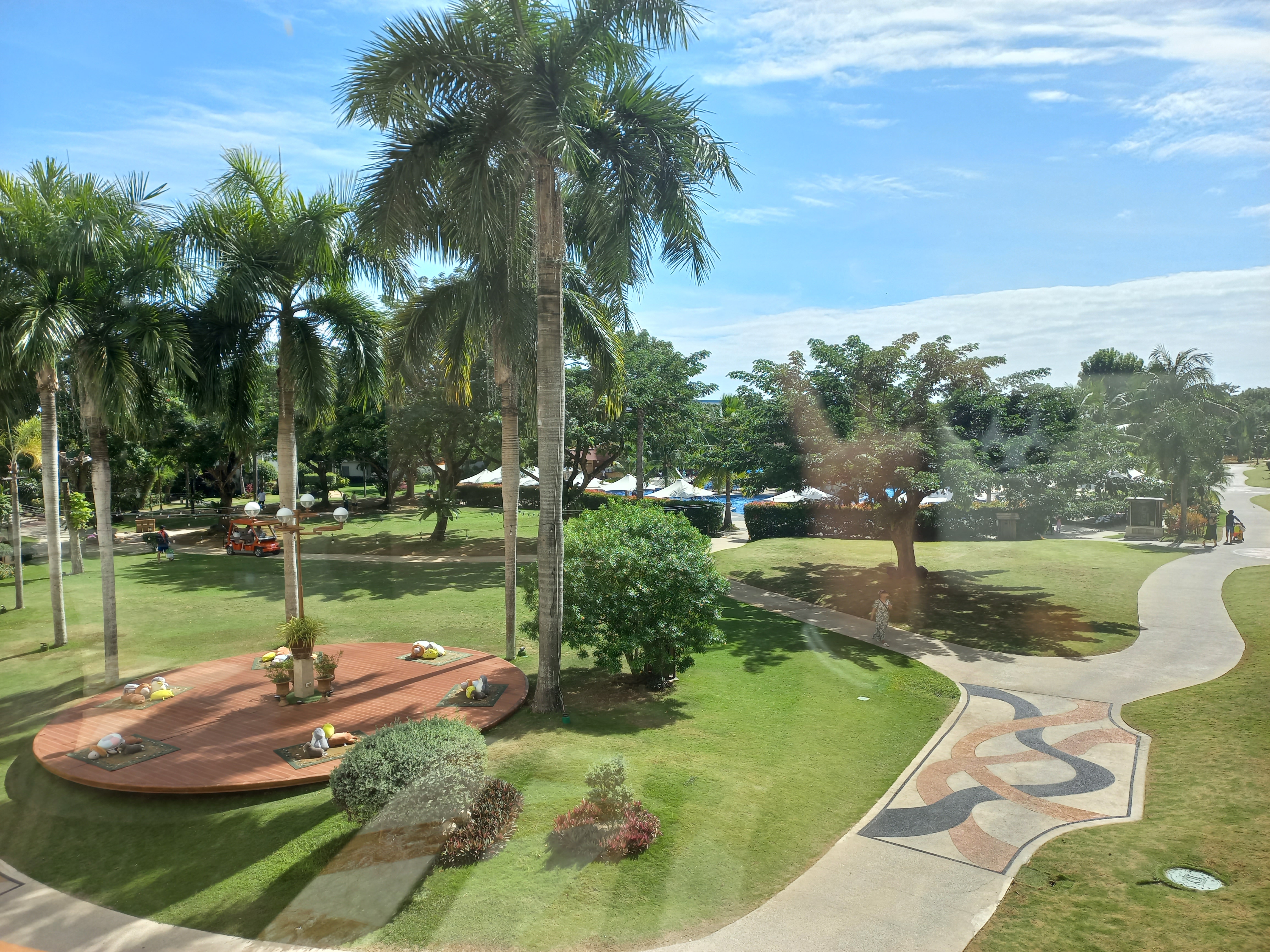 디럭스룸 전망이에요. 왼편으로는 카지노 건물과 정문 주변이 보이고 오른편으로는 비치와 다른 동이 보입니다. 소음은 별로 느끼지 못했어요.